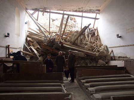 Beim Einsturz des Kirchenturms wurde auch die Orgel mitgerissen. Dringend benötigt es eine Trennwand um das Kirchenschiff vor weiterem Schaden zu schützen. Foto: Dieter Drotleff