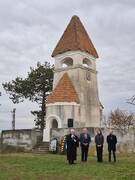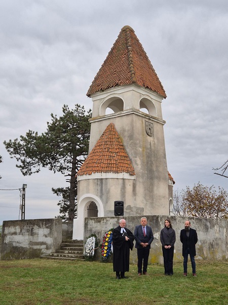 Im Foto: Pfarrer Danielis Mare, Bürgermeister von Marienburg Sorin Taus, Irina Bica, Mitglied des DJK und Bernhard Heigl, Vorsitzender des Kronstädter Kreisforums sprachen bei der Gedenkfeier in Marienburg